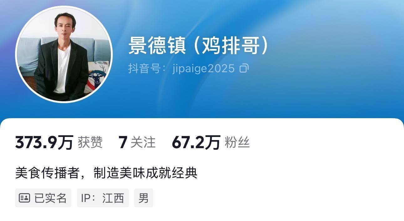 据了解,“鸡排哥”自9月23日开通社交账号以来,目前已有67.2万粉丝。