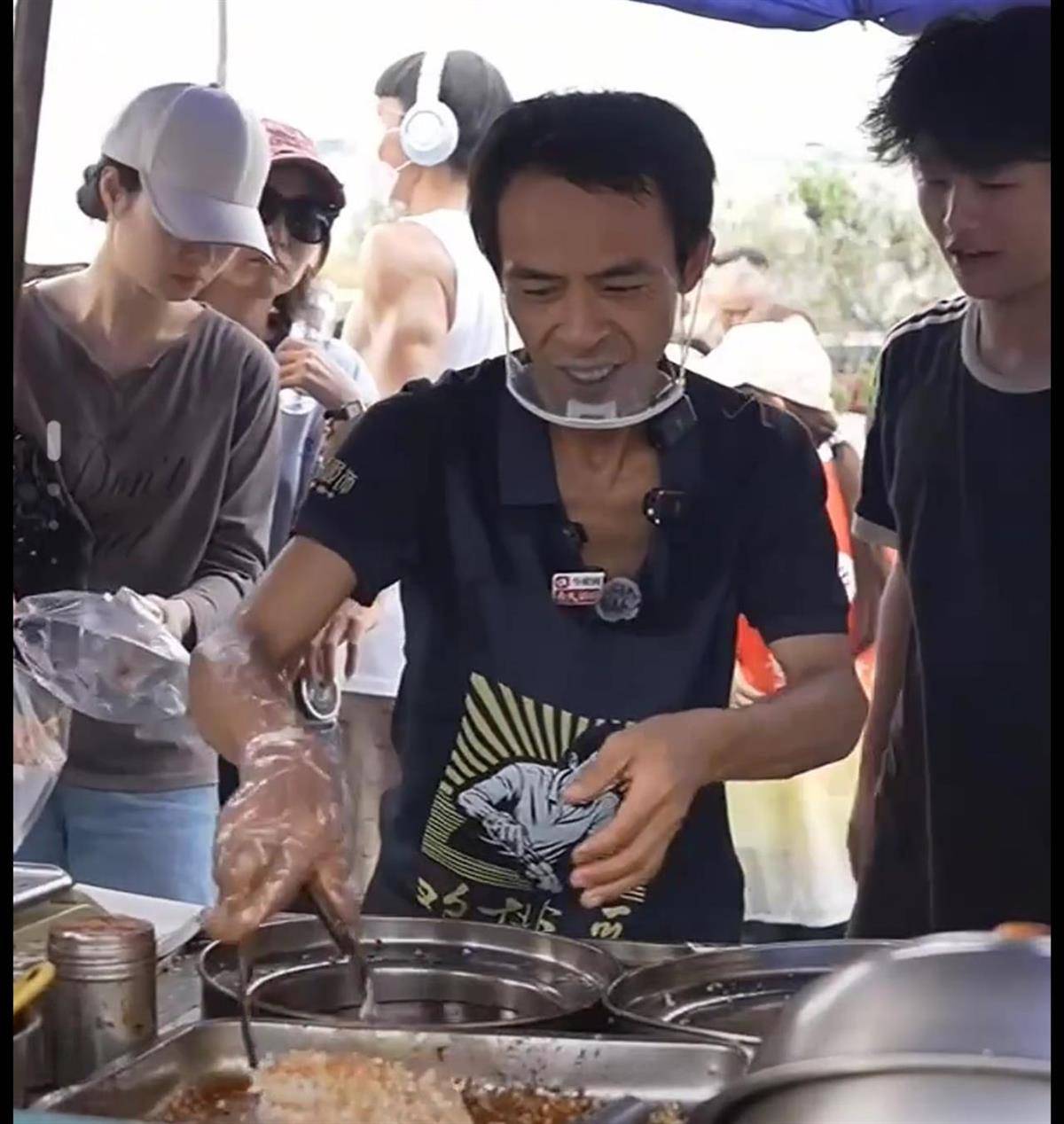 极目新闻记者通过“鸡排哥”的直播画面看到,现场除了顾客、媒体、主播外,还多了手拉手维持秩序的志愿者们。“鸡排哥”在开始炸鸡排前特意介绍,自己和鸡排家族的成员换上了统一的“战袍”,这个衣服是政府帮忙做的,只要是穿这个衣服销售鸡排的,品质都是有保证的。