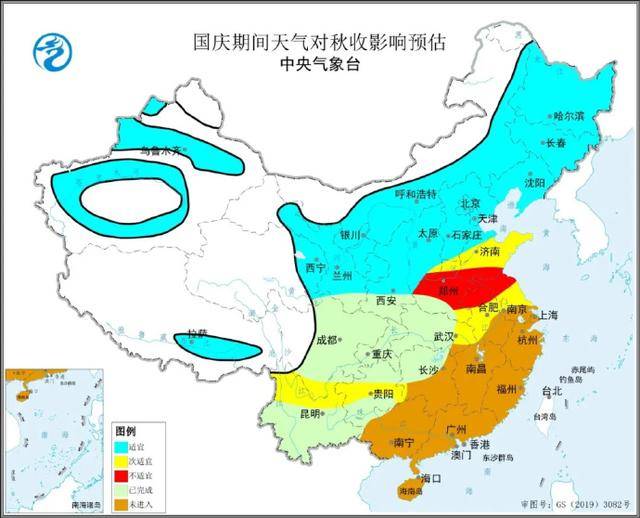 国庆期间,北方秋收区将进入大范围收获阶段的关键期,而西南地区的秋收也接近尾声。中央气象台预计,未来三天,西北地区东部、四川盆地至江汉、黄淮一带,有明显降雨天气。今天,四川、重庆、陕西、湖北、河南、山东、安徽、江苏等地部分地区有大到暴雨,江苏局地有大暴雨,需抓住降水间隙进行抢收抢晾。