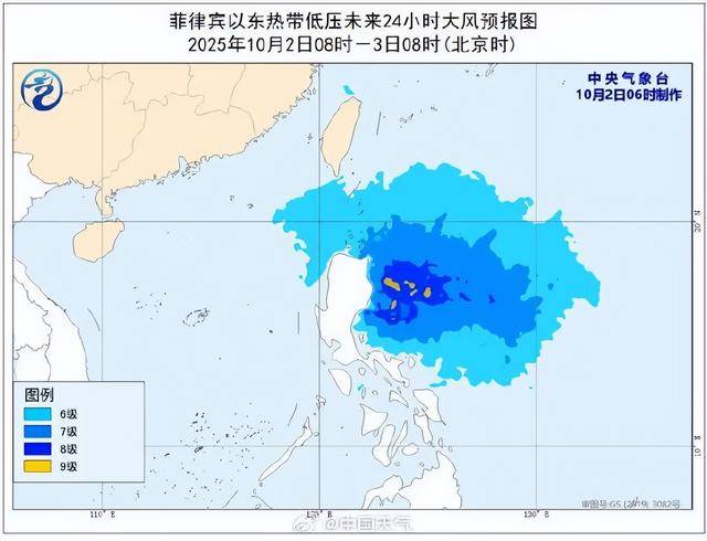 10月2日8时其中心位于菲律宾马尼拉偏东方约680公里的洋面上,就是北纬15.0度、东经127.3度,中心附近最大风力有8级(18米/秒),中心最低气压为998百帕,七级风圈半径100-200公里。