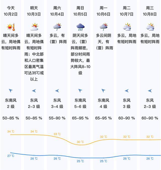深圳国庆假期先晴后雨