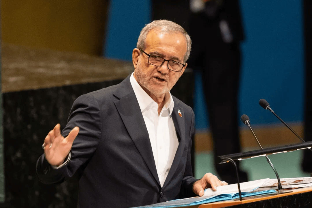 2025年9月24日,伊朗总统佩泽希齐扬在联合国总部举行的联合国大会第八十届会议上发表讲话。图源:视觉中国