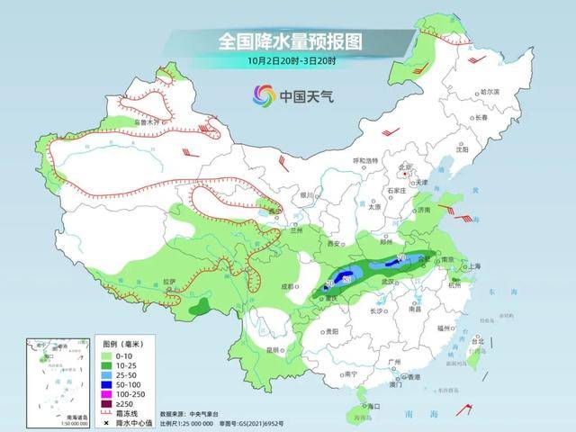 预计10月2日至5日,华西地区、黄淮等地多降雨,累计降雨量50-80毫米,部分地区100-160毫米,四川东北部、陕西南部局地可超250毫米,最大小时雨量20-40毫米,局地超50毫米,局地有雷暴大风等强对流天气。