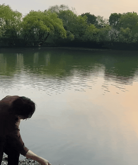 打水漂是农村孩子最爱的河边游戏,人们丢出石头撞击水面,石头在水面上的弹跳次数、滑行距离越多,就显得越厉害。