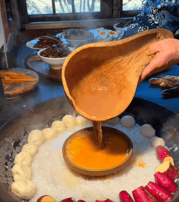吃饭时大家围坐一桌,吃的是热气腾腾的烟火气。