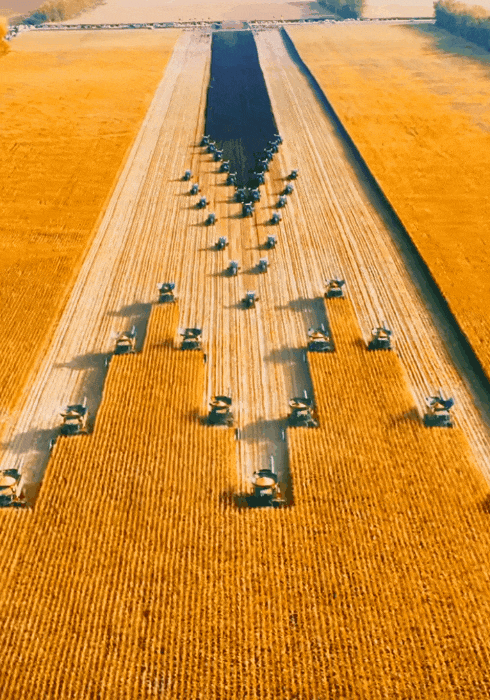 金黄的麦田之中,绿色的农业机械穿梭其中,机器的轰鸣伴着风声,让在场的每一个人都感受到丰收的喜悦。