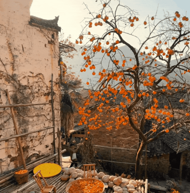 那些农作物鲜艳的颜色,点缀在颇具古风的建筑群中,带来满满的生活气息,仿佛时光都慢了下来。