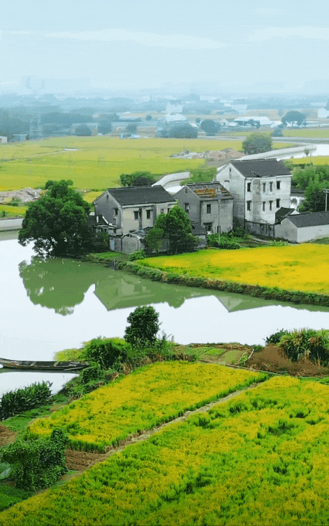 江南水乡的乡村,翠玉般的河水悠悠淌过,绕着白墙黛瓦的屋舍蜿蜒向前。