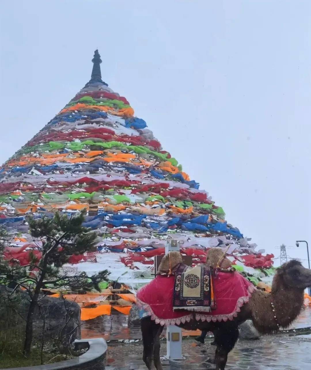 该景区工作人员称,下雪不会影响游客参观,目前山上草坪已被积雪覆盖,路面基本无积雪。不影响景区正常营业,国庆期间游客相比平时更多。