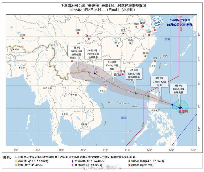 有不少市民关心新台风是否会影响假期天气。今天上午,菲律宾以东洋面的热带低压加强为今年第21号台风“麦德姆”,预计将于3日白天在菲律宾吕宋岛东部沿海登陆,以后穿过菲律宾吕宋岛北部,3日夜间到4日凌晨将移入南海东部海面,以后逐渐向广东西部到海南岛东部一带沿海靠近。“麦德姆”对上海无影响,不过请前往华南沿海地区的市民留心当地天气预报,及时调整行程。
