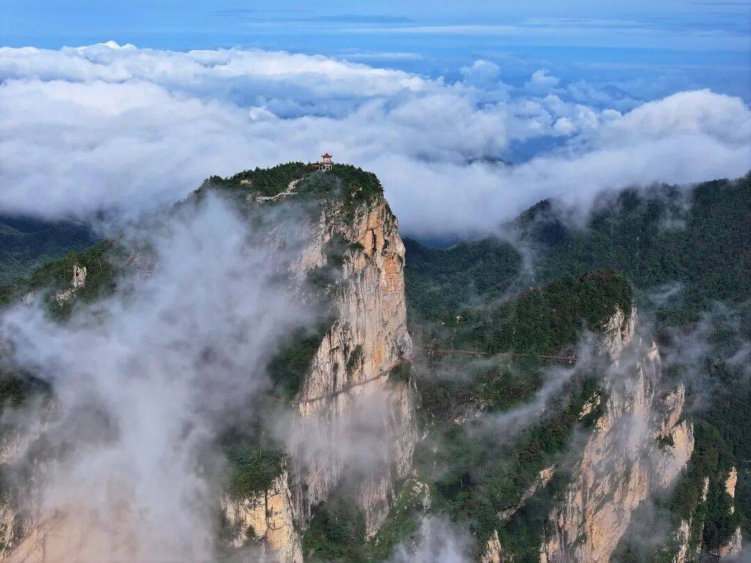 金秋时节,桐柏县太白顶景区海拔1140米的山巅,云海日出壮观绮丽。近年来,桐柏县以建设中国文旅名县为目标,将山水之美、文化之韵、产业之兴编织融合,走出特色文旅路。 (崔培林/摄)