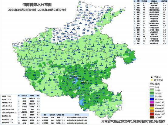 其中,10月2日7时至3日7时,我省沿黄及以南出现小到中雨,商丘、平顶山、南阳、驻马店、信阳等地局部大雨。全省平均降水量5.3毫米,地市平均降水量位列前三的分别为:驻马店15.9毫米、漯河9.7毫米、信阳9.1毫米,降水量位列前三的分别为:驻马店市实验32.0毫米、泌阳县付庄31.4毫米、驻马店市周楼30.5毫米。整点最大小时降水量为息县尹湾11.1毫米(10月3日6时至7时)。