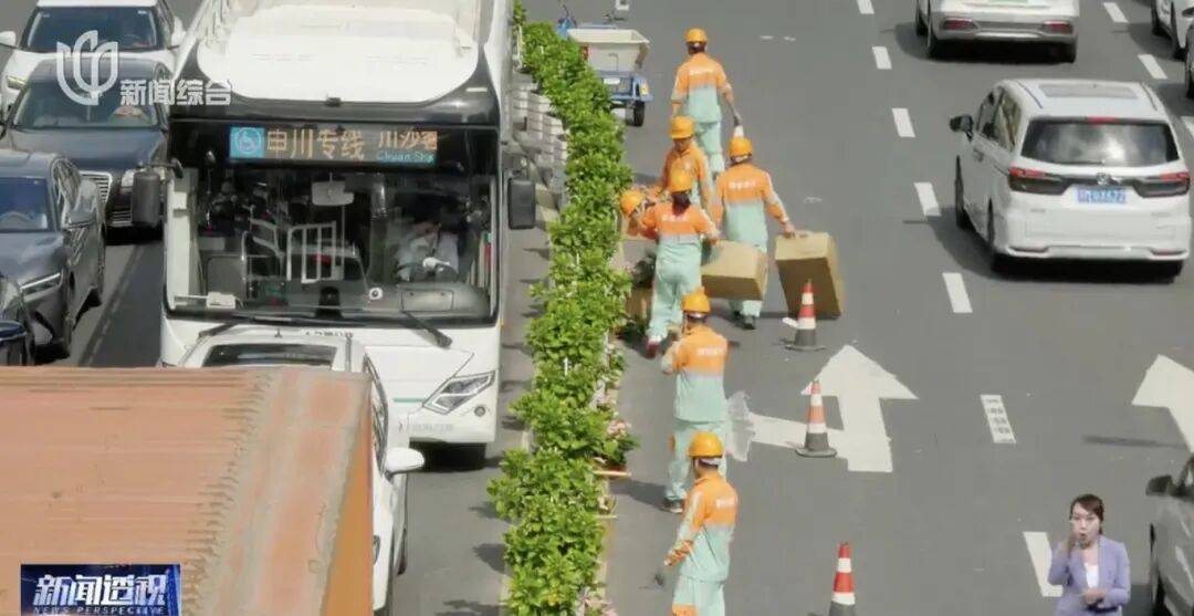 恒丰路中央隔离带的花箱在换季调整时,主打一个要美观,也要经济实惠,主材花灌木"朱槿"会被保留下来,周边配上当季的草花"粉掌"应景,这样的组合价廉物美,而且花团锦簇的景观效果可以一直持续到初冬。