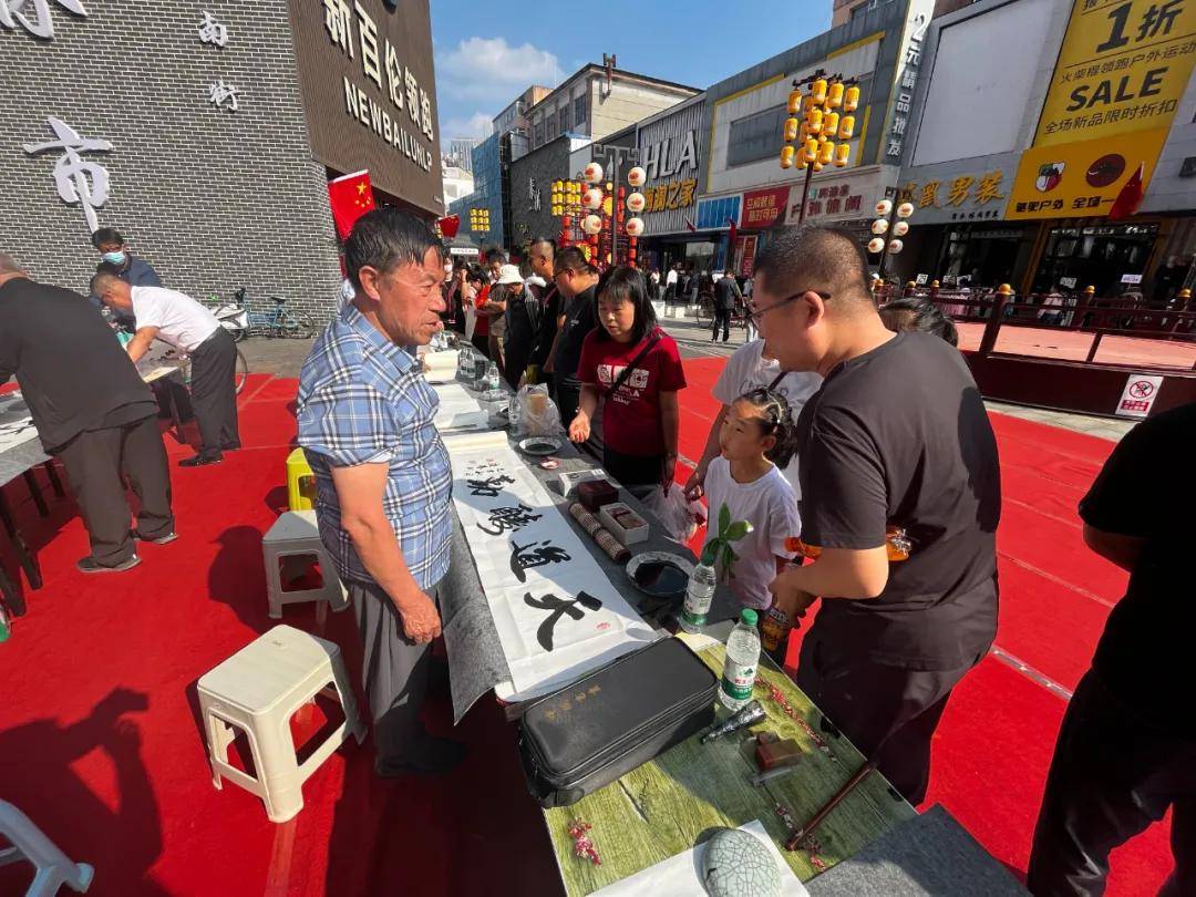 演出间隙,主持人王凤云与现场挥毫泼墨的书法家们互动,并将即兴创作的书法作品赠予观众。拿到“生意兴隆”字样墨宝的饭店经营者迟中权表示,在佳节期间收到这份祝福,感到非常开心。