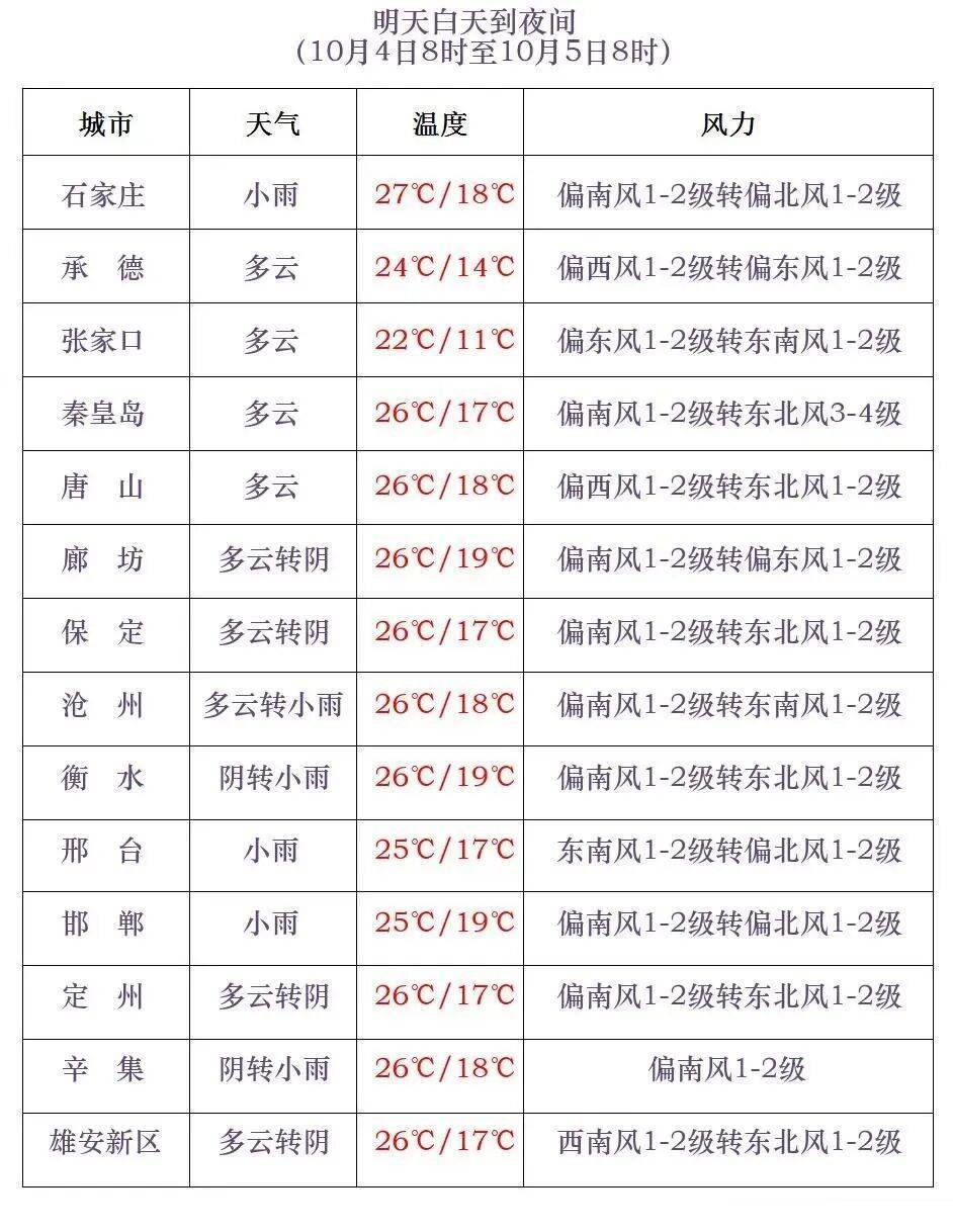 明天夜间到5日,承德、唐山、秦皇岛多云转阴,其他地区阴有小雨,局地中雨。
