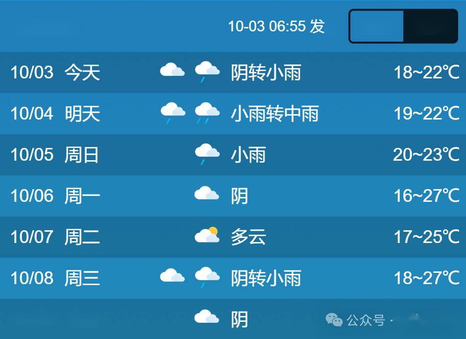 那么今天(10月3日)的天气如何?雨势会有变化吗?