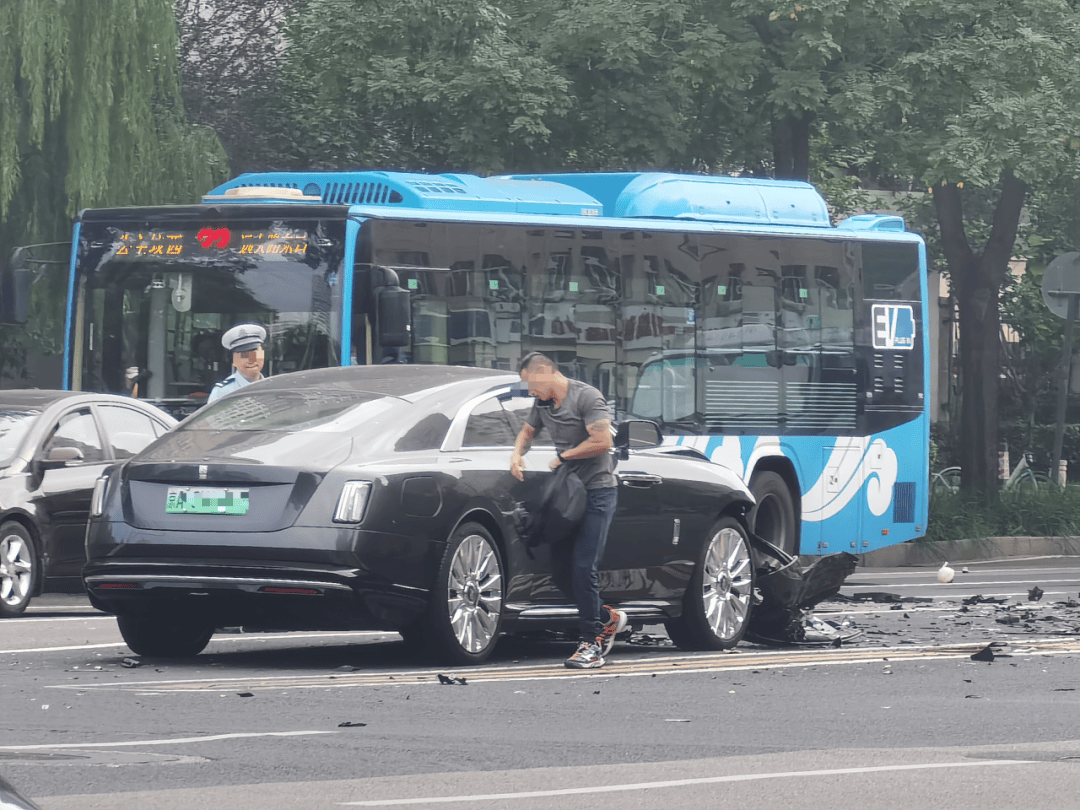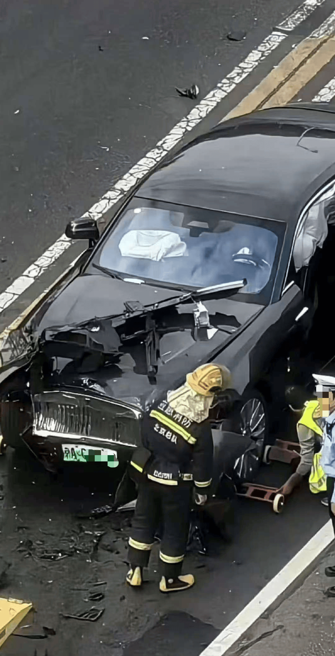 网传照片显示,一辆劳斯莱斯闪灵轿车停在公路上,车身损毁严重,安全气囊弹出。车外人员疑似知名车评人陈震。记者对比该车的车牌号,与此前媒体曝光的车评人陈震车辆为同一号牌。有网友称,该事故发生在北京万寿路。