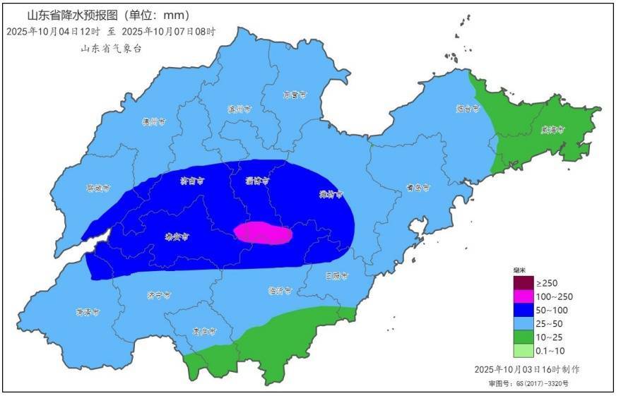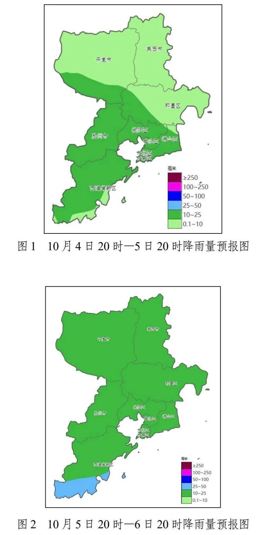 10月4日12时—7日8时山东省累积降水量预报(毫米)
