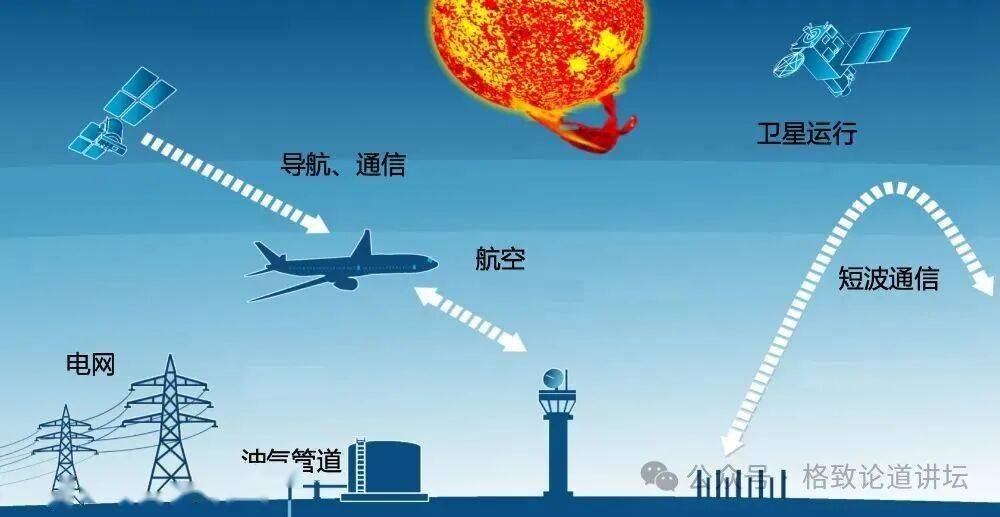 它对地面长距离的输电线路也会产生影响,因为地磁场的变化相当于切割磁力线会产生感生电流,感生电流就会使变压器烧毁。曾经在1989年的魁北克就发生过类似的停电事件。