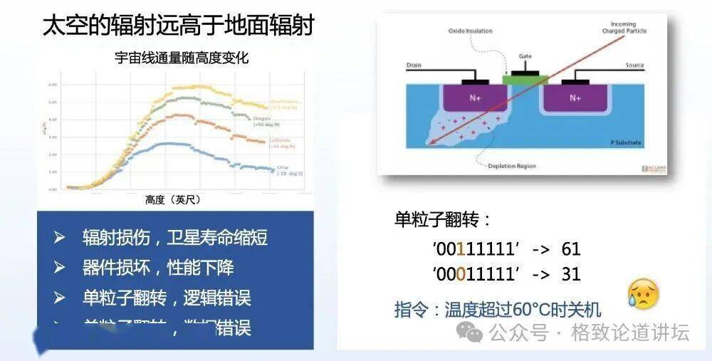 人类的数字电路都是由0和1组成的,如果有一次高能带电粒子打击逻辑电路的话,就可能把0变成1、1变成0。这被我们称为“单粒子翻转事件”,也就可能让人类指令发生根本的变化。