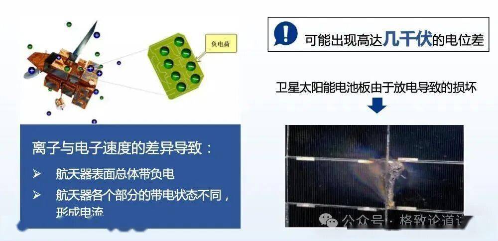 大家都知道,卫星、航天器、空间站都运行在几百公里到上万公里的地球空间,这些带电粒子会不断在航天器表面积聚。电子积聚就会形成负电压,积聚得越多,它就会产生越来越高的电压,有时能达到几千伏。几千伏的电压,如果它放电就会影响到卫星运行的安全。