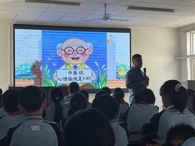 活动现场,原武警青岛支队卫生队队长,现逄博中医诊所主治医师陈晓东以“做情绪的小主人”为主题,为学生们带来了一场生动的健康知识讲座。