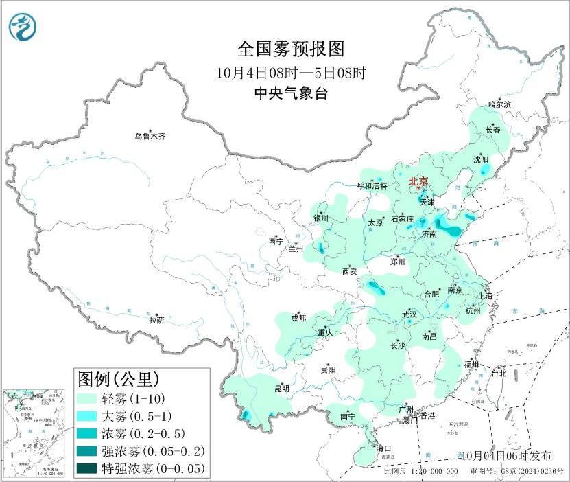 中新网10月4日电 据中央气象台网站消息,4日早晨至上午,山东中部、河北中部和南部、湖北西北部等地的部分地区有大雾天气,局地有能见度不足200米的强浓雾。此外,未来一周,全国大部地区大气扩散条件较好。