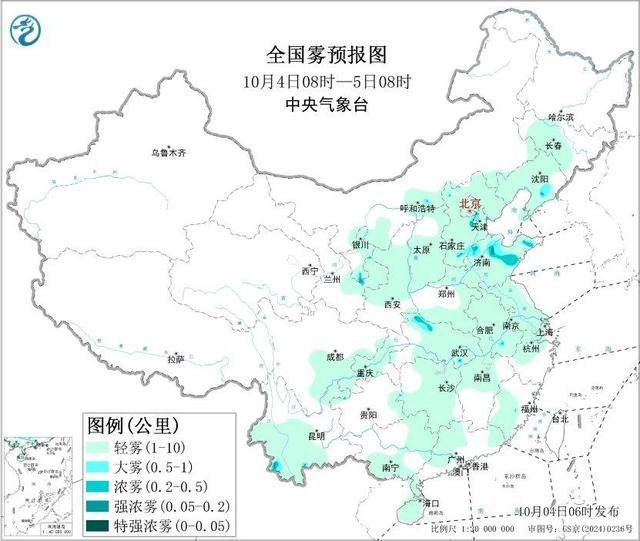 4日早晨至上午,山东中部、河北中部和南部、湖北西北部等地的部分地区有大雾天气,局地有能见度不足200米的强浓雾。此外,未来一周,全国大部地区大气扩散条件较好。