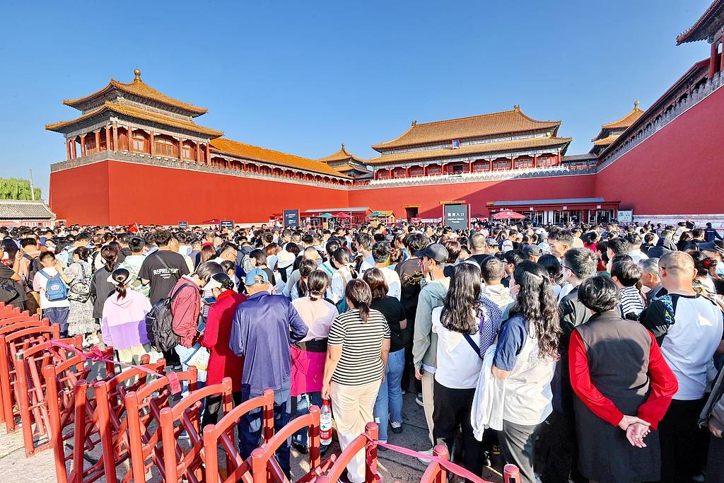 2025年10月2日,北京故宫博物院游人如织,迎来客流高峰。