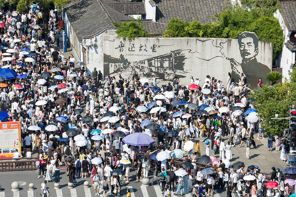 2025年10月2日,浙江绍兴,游客在鲁迅故里参观游玩。