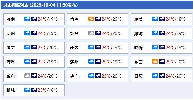 最高气温:菏泽、鲁西北和鲁中山区21℃左右,济宁、枣庄和临沂南部25℃左右,其他地区23℃左右。