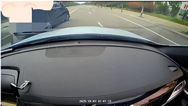 3分39秒时长的行车记录仪画面显示,10月3日11:58,司机载着两位乘客正常行驶当中,前面一辆悬挂晋LE696X车牌号的黑色丰田车不顾网约车鸣笛,突然往右变道。