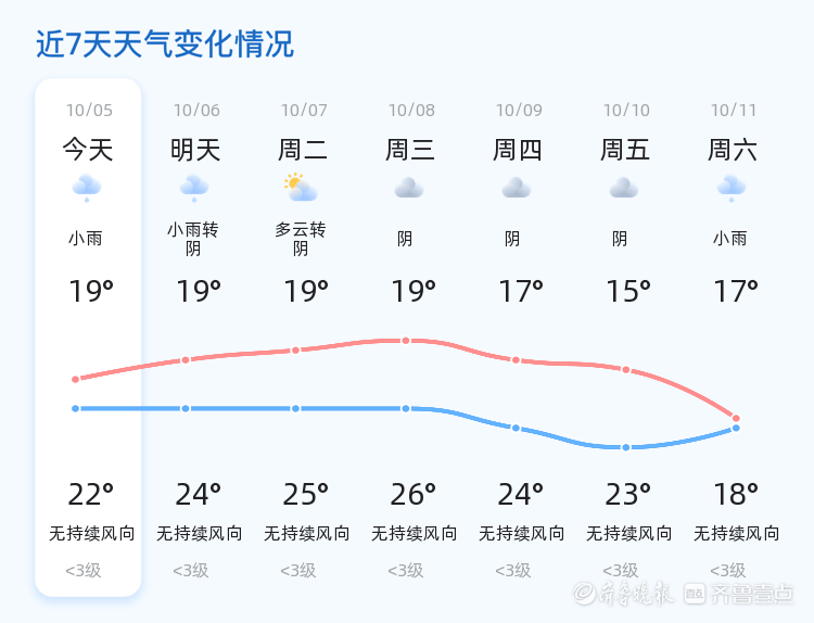 今天是公历10月5日,农历八月十四,星期日。济宁市今日天气以小雨为主,北风1级,空气湿度达到97%,PM2.5指数为11,空气质量优良。今日气温适中,最高气温22℃,最低气温19℃,各区均出现小雨天气,市民出行需携带雨具,注意交通安全。明天济宁天气将有所变化,预计为小雨转阴,气温略有上升,最高气温24℃,最低气温19℃。与今日相比,降雨时间将有所缩短,但阴天为主,市民仍需做好防雨准备。未来三天,济宁市天气趋势为多云转阴,气温逐渐回升,最高气温将达到25℃。但需要注意的是,周末期间可能再次出现小雨天气,市民需关注天气预报,提前安排出行计划。此外,由于近期湿度较大,市民应注意防潮保暖,避免感冒。温馨提示