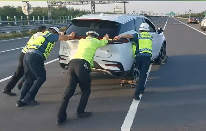 若您在行车中偶遇故障,无需慌张。巡逻车辆携带有“移车神器”,四个看似不起眼的轮胎底座,就像给爱车穿上了“风火轮”,即便轮胎抱死,三五名队员合力推动,只需几分钟就能快速将车辆移至路侧。从发现到推离,提升的不仅仅是效率,更是安全。