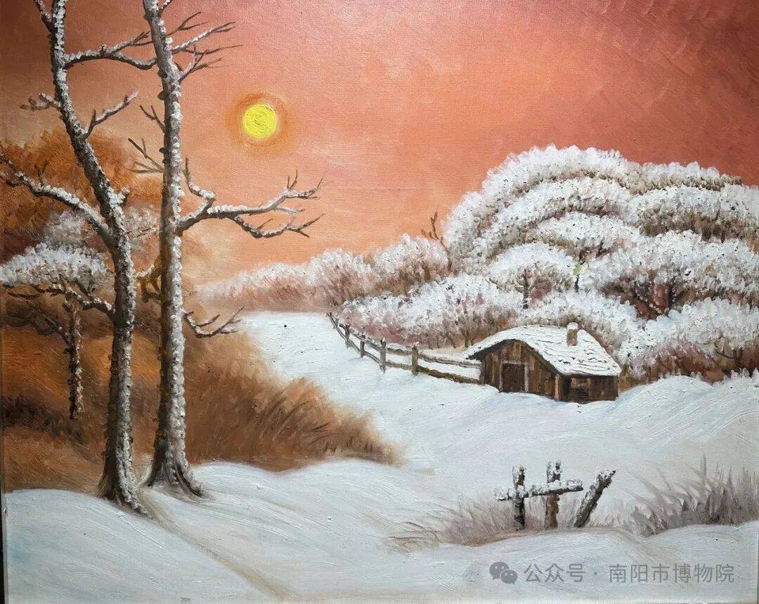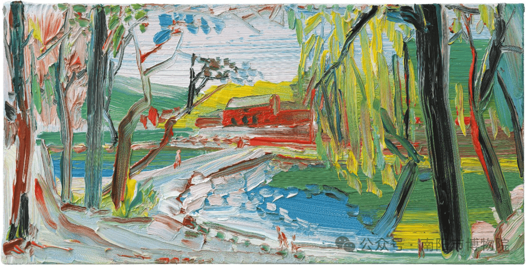 在乡村城市化的改造中,我们居住的村庄已经或正在都市化。尹朝阳的老家汉冶村净土庵社区,早已从郊区变成城中村。这种改造造成的文化断裂已然成为时代隐痛。艺术家作为文化传承与创新的主体,其乡土责任不仅在于艺术创作本身,更在于通过美学启蒙激活乡村的文化自觉,重建人与土地的情感联结。因此,这次展览作为艺术乡建的“轻介入”实践,实现了探索乡土美学的当代转化路径,既是对传统文化的守护,也是对现代性危机的回应。地域美学的当代价值在于其承载的文化基因与生命经验。尹氏父子的油画以根植于南阳的文脉为母题,将家乡质朴自然的景观升华为诗性画面。这些创作表明,艺术家的责任不仅是记录乡土,更是以现代语言激活其文化内核。