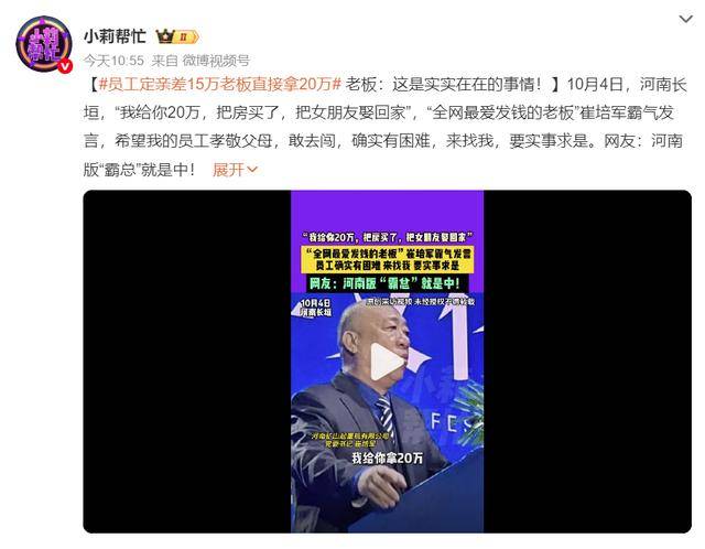 有个员工要结婚想从公司借15万,我直接给他20万,让他把女朋友娶回家。有困难就来找我!网友:狠狠羡慕了,河南老板就是中!(小莉帮忙)