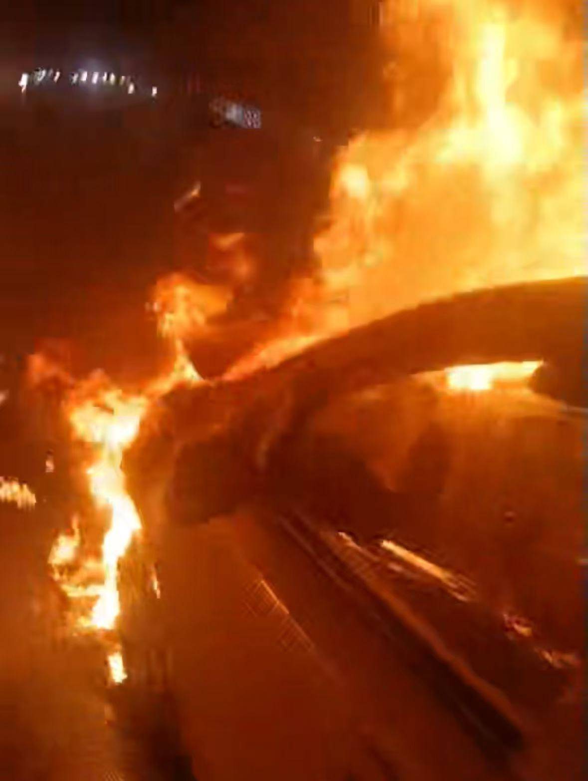 此后有路人称自己在晚8时4分许路过看到车辆起火。还有路人在晚8时17分拍到一辆车被火焰吞没的照片。