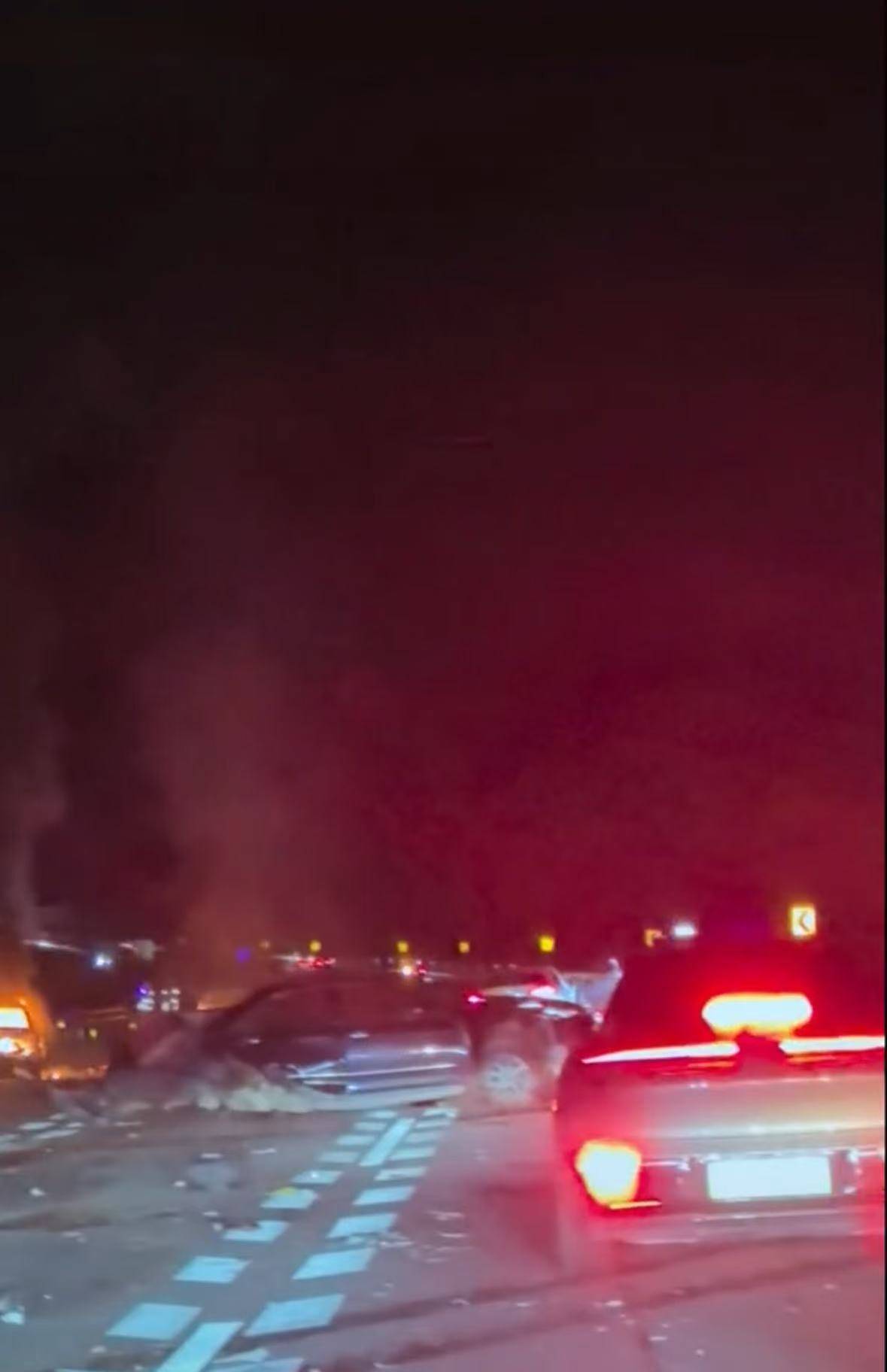 还有一名车主发布的行车仪视频显示,其于19时35分许经过事发路段,看到有多车相撞,靠左第一条车道有一辆黑车被严重撞坏,此外应急车道还停有车辆和人群。现场没有起火,“刚撞完不久,为什么开始有点堵的时候没人设警示牌,还瘫在应急车道。”记者私信该车主但未获回复。