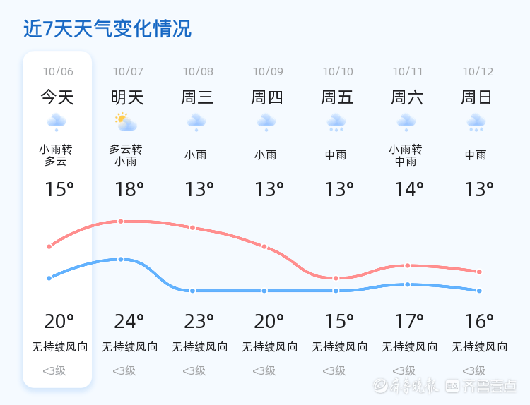 未来三天,菏泽市天气以小雨为主,气温波动较大,最高气温24℃,最低气温13℃。其中,10月10日可能出现中雨天气,提醒市民注意防寒保暖,出行时携带雨具,避免因天气突变造成不便。
