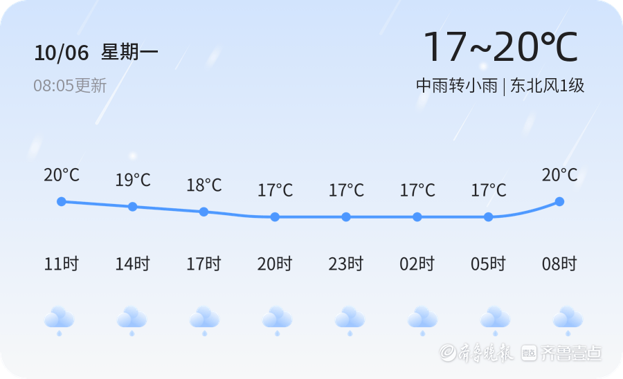 今天是10月6日,星期一,农历八月十五。潍坊市今日天气为中雨转小雨,气温在17℃到20℃之间,东北风1级,空气湿度达到100%。PM2.5浓度为22,空气质量状况为优。目前,青州市和寿光市发布了暴雨蓝色预警信号,预计今天凌晨至白天降雨仍将持续,部分镇街降雨量可达50毫米以上。同时,诸城市发布了大雾黄色预警信号,预计今天夜间到明天上午将出现能见度小于500米的雾。市民出行时请注意携带雨具,减速慢行,防范道路积水和低能见度对交通的影响。