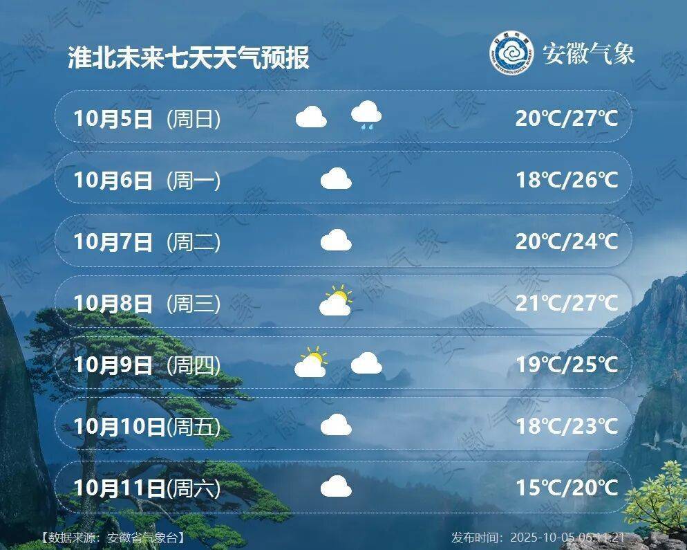 6日(周一):淮河以北多云到阴天,部分地区有阵雨或雷雨;江淮之间晴天转多云,北部有阵雨或雷雨;江南晴天。