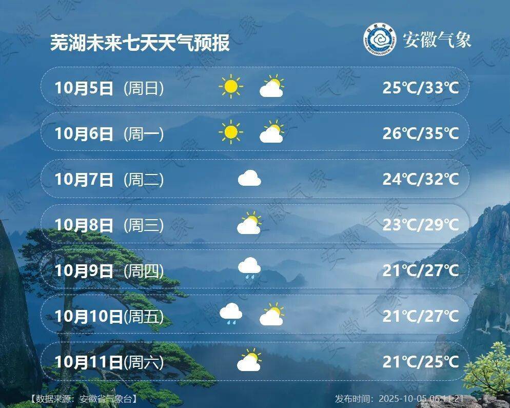 气温:6-9日沿淮淮北地区最高气温普遍30℃以下,仅6日淮北部分地区30~32℃;江淮之间最高气温30℃左右,其中6日部分地区33~35℃;沿江江南大部分地区超过30℃,其中6-8日部分地区将出现35℃以上的高温天气。10日后全省气温将下降。