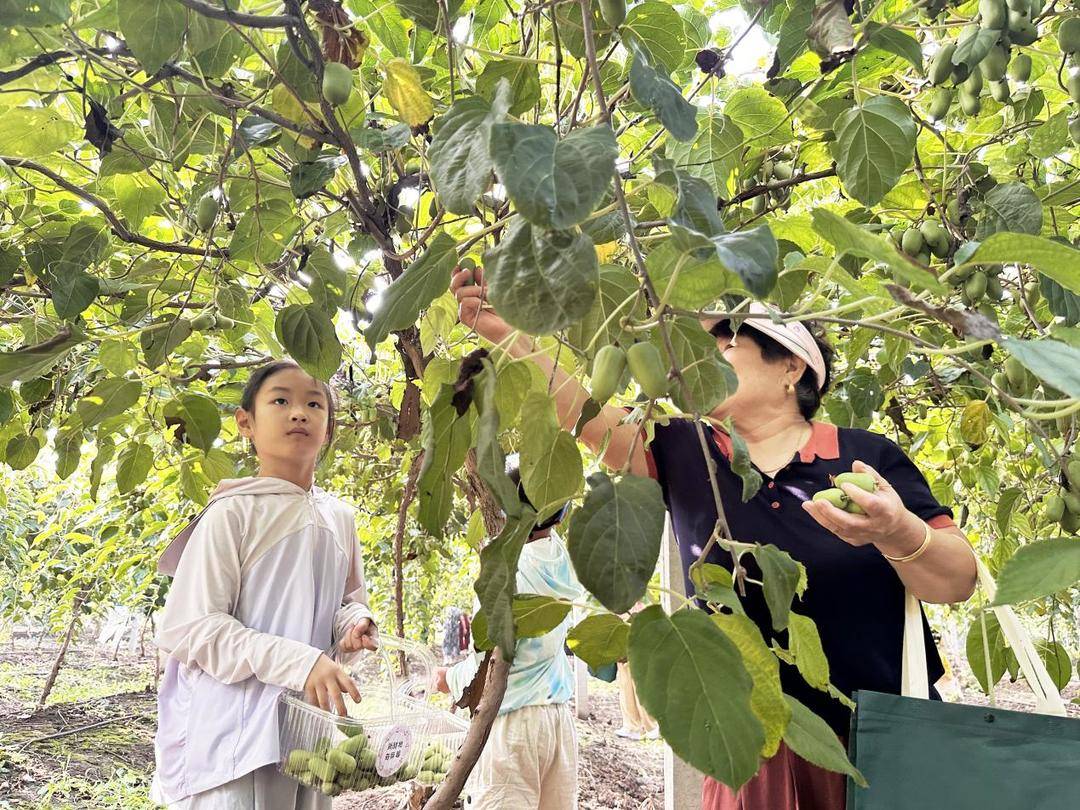 在新甜地软枣猕猴桃种植园中,成串翠绿饱满的软枣猕猴桃挂满枝头,吸引了不少游客驻足品尝。据园主介绍,很多游客都是专程前来采摘,软枣猕猴桃维生素含量可达普通猕猴桃的2-3倍,营养丰富、口感独特,周末日均接待游客超200人次。“这种小猕猴桃不用剥皮,一口一个,清甜多汁,孩子特别喜欢!”带着家人前来体验采摘的刘女士说道。