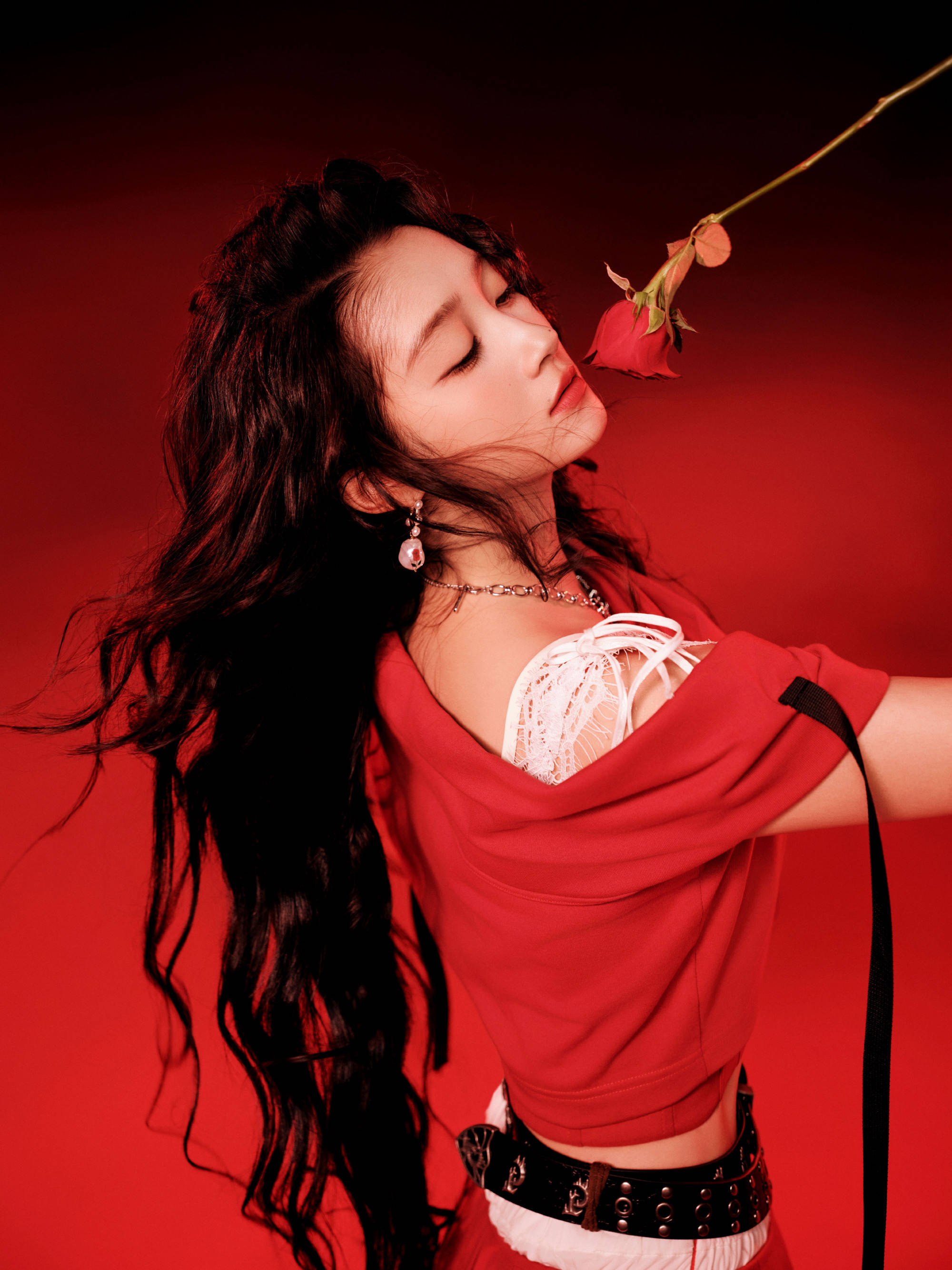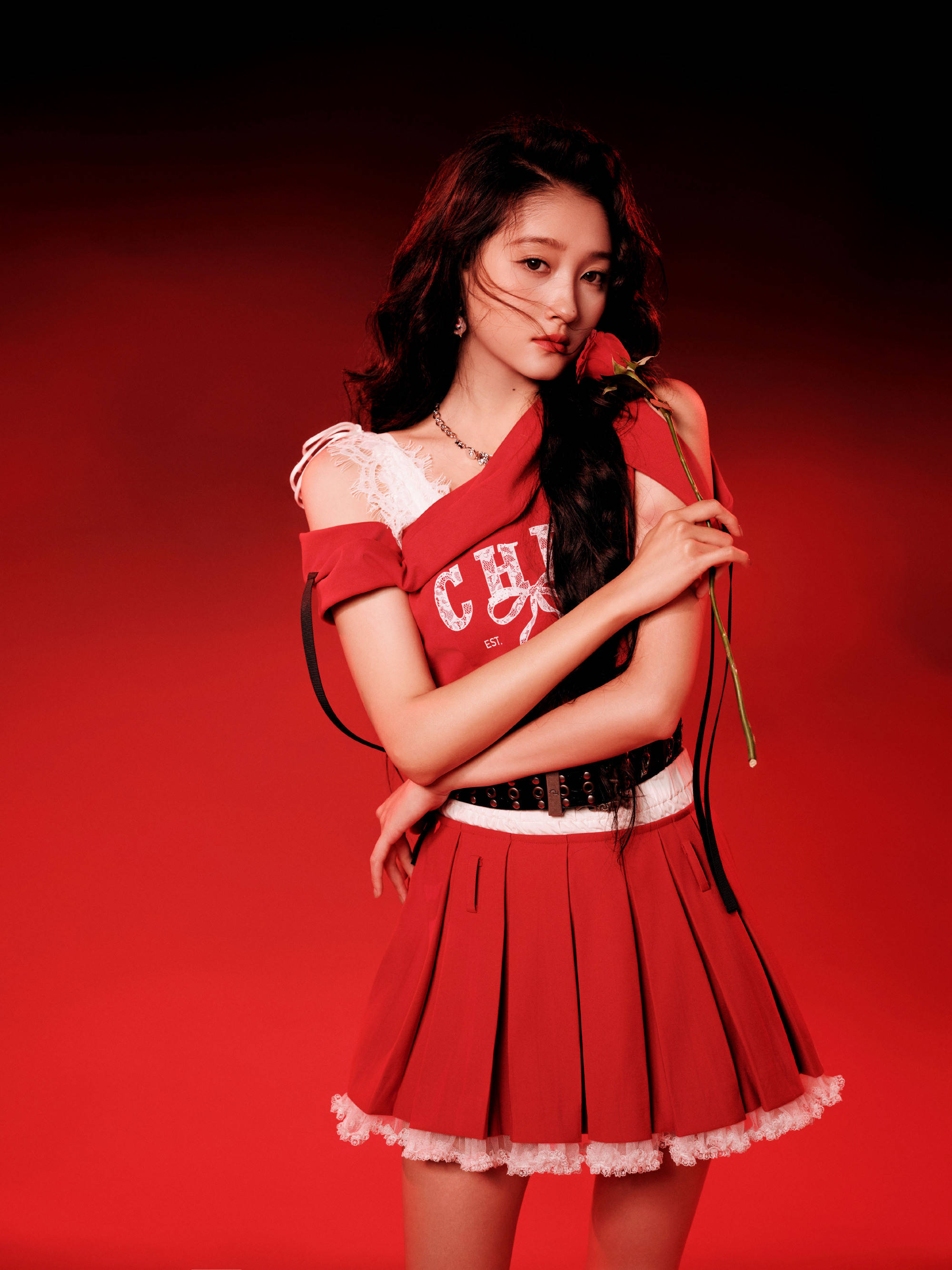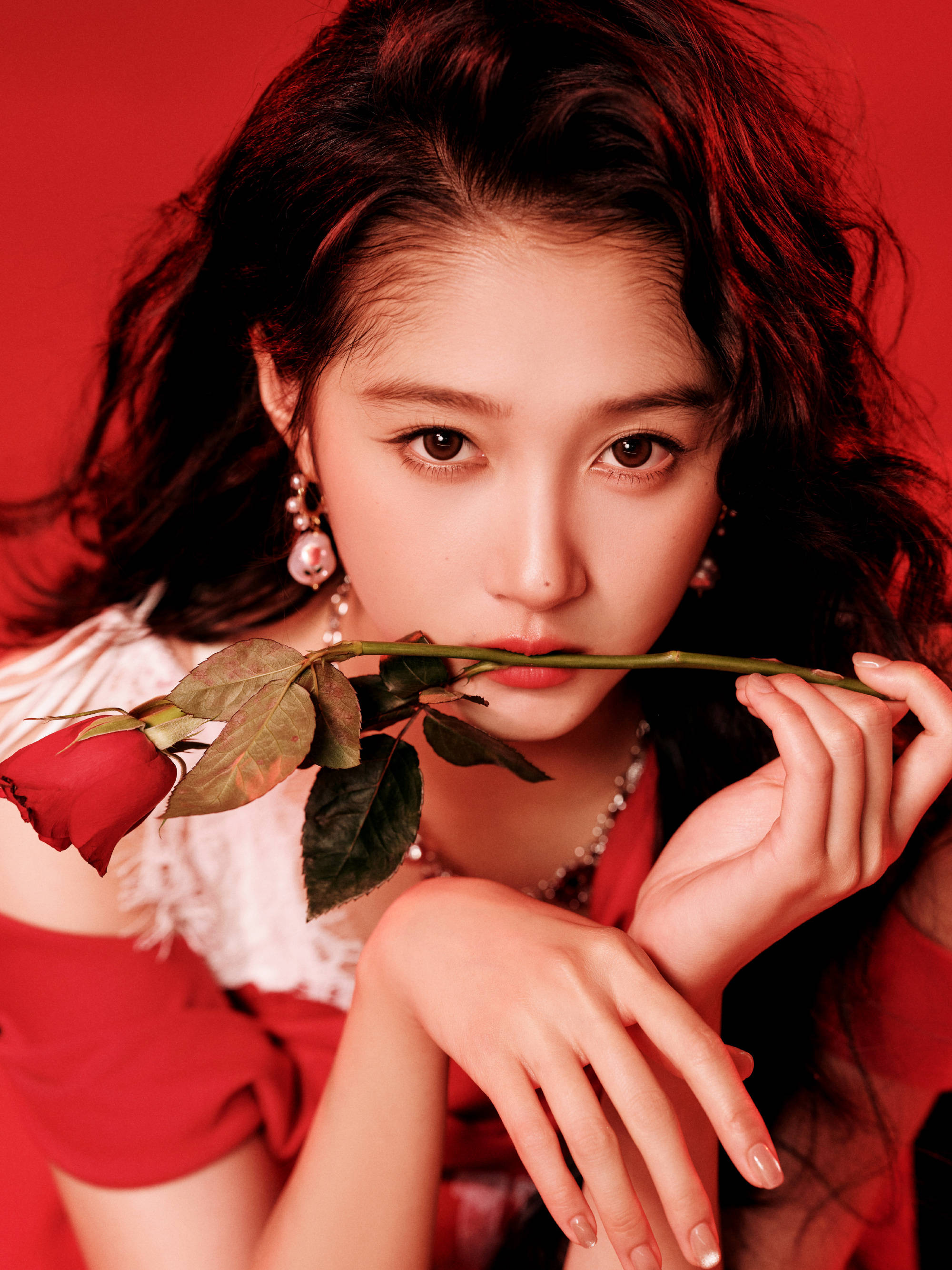 关晓彤化身玫瑰女郎,热情似火,明艳动人。
