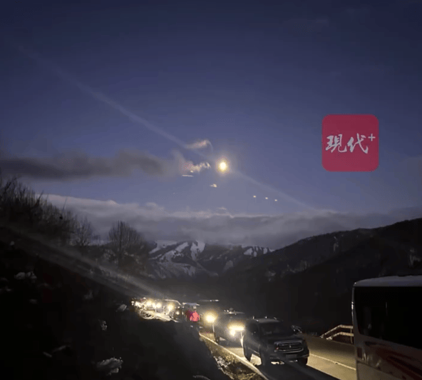 此前,6日早上5点半左右,这名网友还发布了一条视频,配文是“10.5晚9:38,位置阿勒泰-禾木-契巴罗衣”,视频画面可见公路上停着一排汽车,开着车灯,但没有向前移动,天空中仍飘着雪。