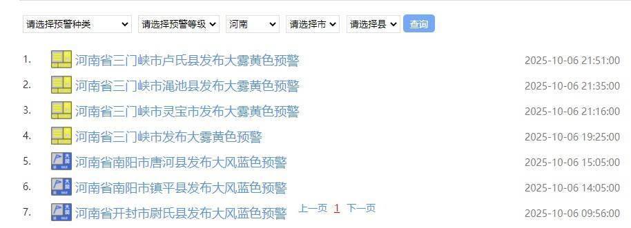另据@河南气象,截至10月7日8:58,河南生效中的气象预警共有7个: