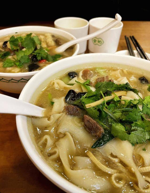 筋道的饸饹面浇上浓香羊汤和肉臊,