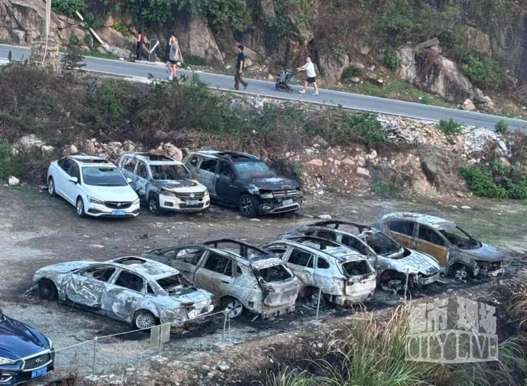 据一名被波及的埃安车主介绍,被烧坏的都是游客的汽车,没有人员伤亡。