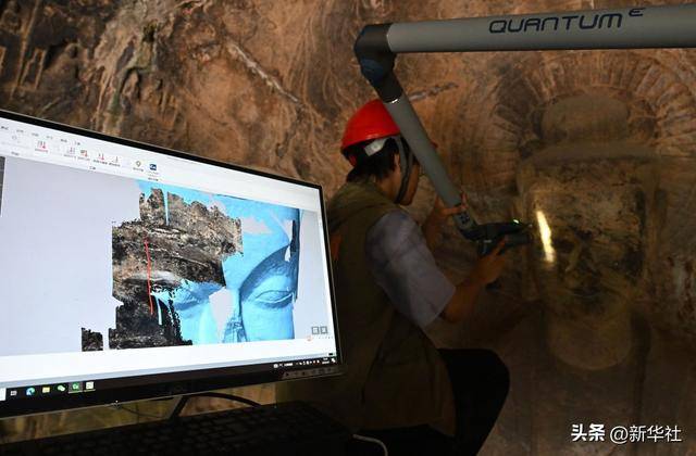 2025年4月9日,武汉大学文化遗产智能计算实验室团队成员在河南洛阳龙门石窟魏字洞使用关节臂扫描仪对佛像进行数字化扫描。从2005年起,龙门石窟研究院开始为龙门石窟建立数字化档案,借助激光扫描、高清摄影等技术手段收集文物数据,以数字的形式留存千年石刻群的风貌,致力于让这一规模宏大、气势磅礴的石窟瑰宝“芳华永驻”。