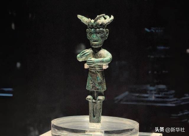 金沙遗址出土的铜立人,造型与三星堆青铜大立人相似(2025年4月9日摄)。三星堆遗址和金沙遗址都位于四川,距今约3600年至2800年,作为古蜀文明的两个中心遗址,共同勾勒出古蜀文明前后相继的辉煌图景,其出土文物是中华文明多元一体的生动例证。